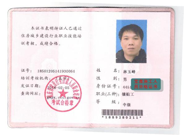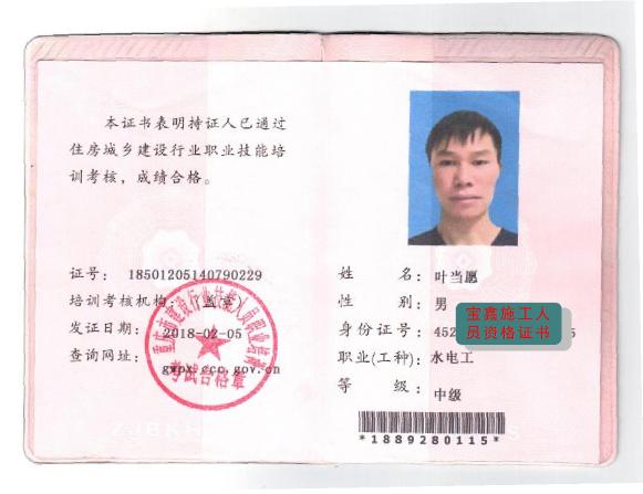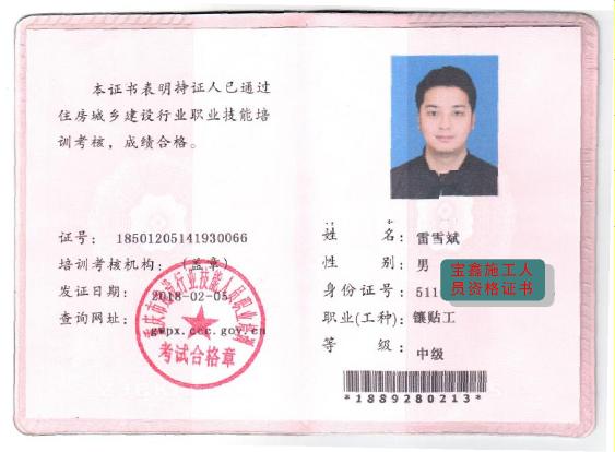 施工人员资格证书