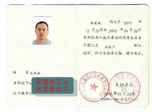 施工人员资格证书